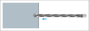 Không xoay với tốc độ cắt cho đến khi mũi khoan chạm gần đến đáy của lỗ dẫn hướng, chèn ở tốc độ chậm hoặc dừng lại.