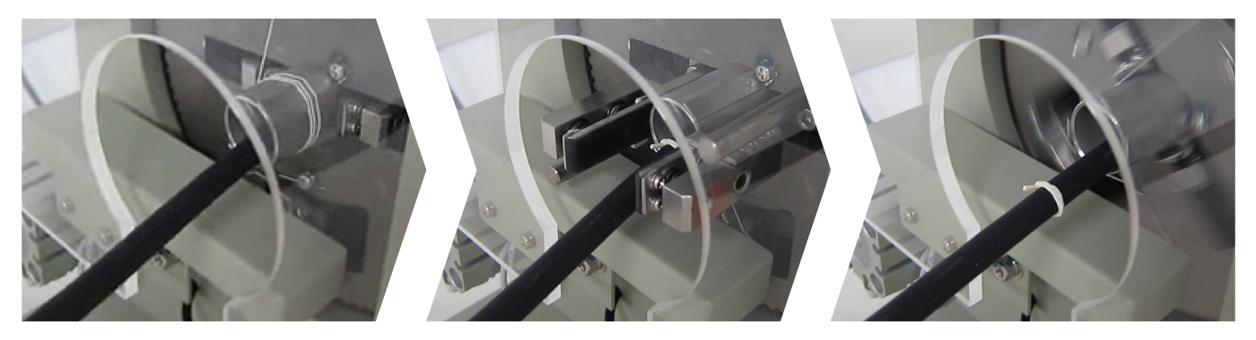 Một sợi dây cao su đàn hồi được kéo căng và giữ ở trạng thái vòng chờ sẵn, khi nhận được tín hiệu đánh dấu vòng cao su tự động bung ra tại đúng điểm tín hiệu. Cho phép đánh dấu trong quá trình vật thể đang di chuyển.