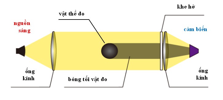 Dựa vào sự thay đổi lượng ánh sáng đi qua khe hở trong phần tiếp nhận ánh sáng. Bộ cảm biến tính toán đưa ra tín hiệu nhận biết sự không đồng đều đường kính ngoài của vật thể.