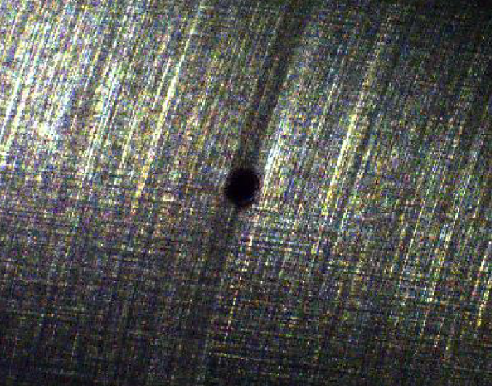 Kết quả ảnh chụp với độ rõ nét khi vật thể di chuyển ở tốc độ cao. Thực nghiệm khoan một lỗ tròn lên vật thể có kích thước φ50µm. Vật thể đang ở trạng thái di chuyển thì thấy rằng hình ảnh được ghi lại một cách rõ ràng dễ quan sát nhận biết đánh giá. |