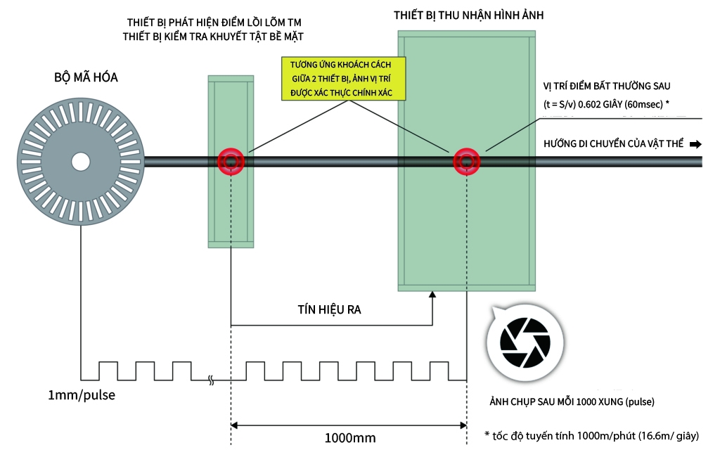 Với phương pháp tách biệt 2 chức năng phát hiện lỗi và chức năng chụp ảnh, hệ thống có thể kiểm tra trên dây chuyền sản xuất tốc độ cao và cũng có thể chụp ảnh khi tốc độ tuyến tính ở mức 1,500m/phút.