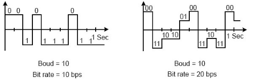 Nói cách khác: Tốc độ bit = tốc độ Baud x số bit trên mỗi tín hiệu.
